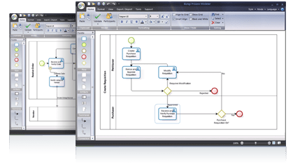I had to continue seeking ways to show processes visually. I knew UML2 together with its limitation, and I looked for other standard modeling languages to visualize process flows. I found BPMN, Business Process Modeling Notations. First I read the standard, and I found that very useful. I found BPMN support in Visio, but it was really cumbersome to draw process models. I gave up. Then I started to browse the internet systematically to find support tools for BPMN. Sourceforge did not provide solution, but I found Bizagi Process Modeler. This application is a (free) part of a huge system, what is able to compile and execute the models you create in BPMN. It looked very impressive. Of course I downloaded it immediately and started to use. It was awesome! It knew everything I missed before with other tools! It fully supports BPMN, but lets you to deviate a bit from the standard. Drawing is easy and fast. I really recommend.